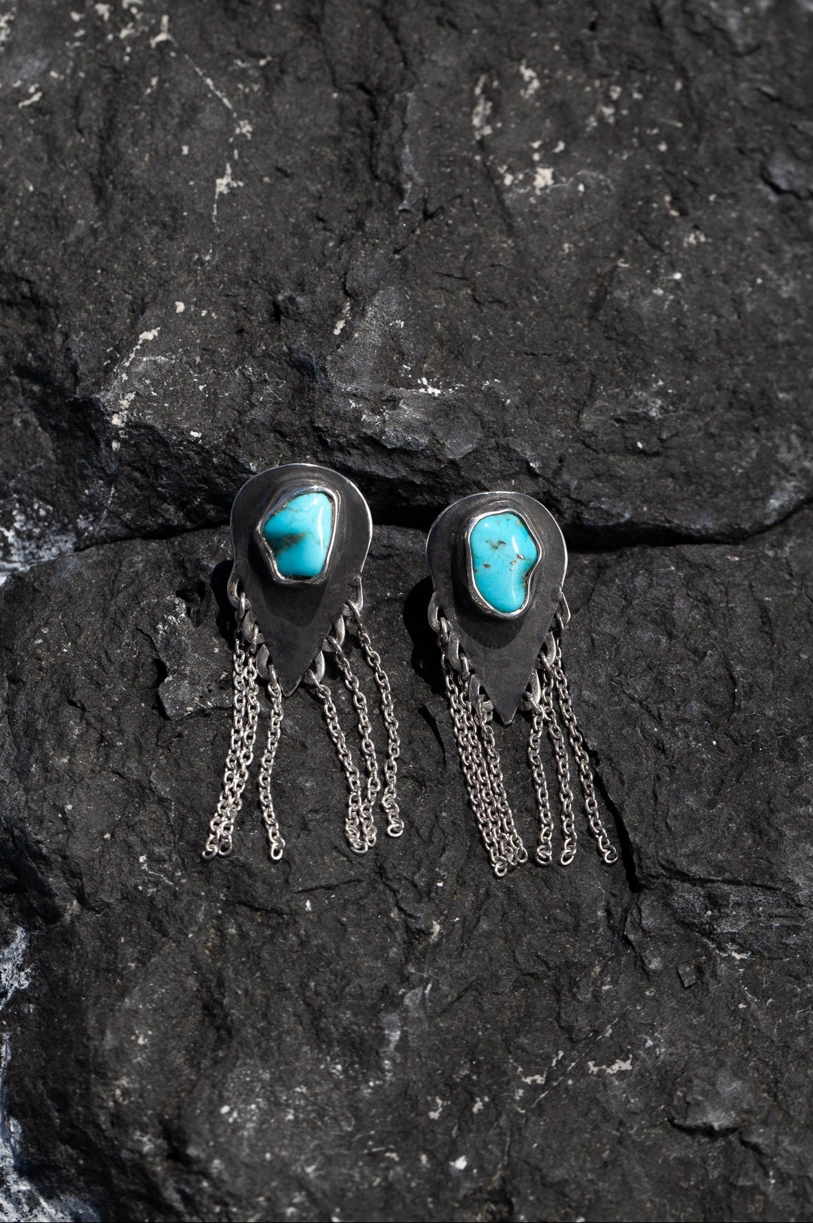 Post earrings featuring organically shaped Turquoise from New Mexico.